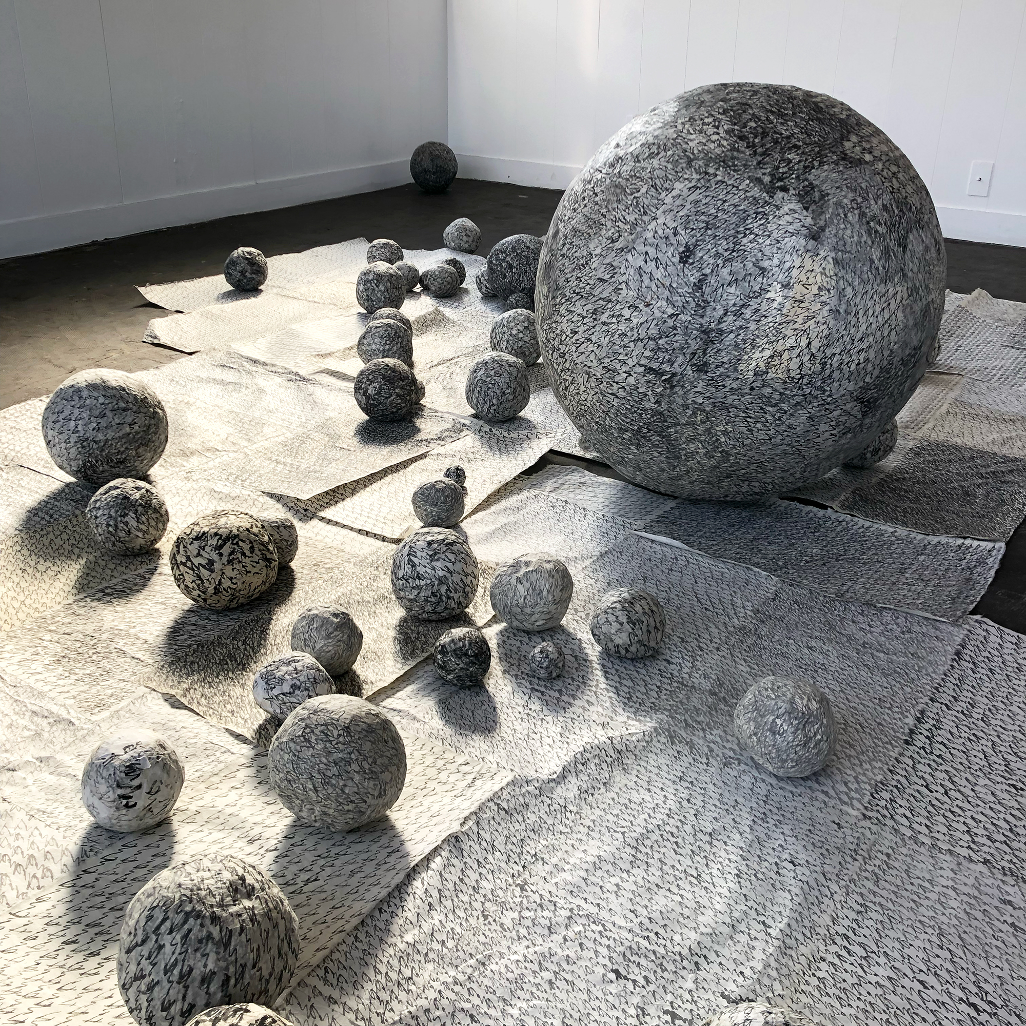 文字を声という解釈のもとに「祈り」をテーマに制作。人間の精神の探求の手段として墨を用い、書の筆の線の集積によりそのイメージを追求している。